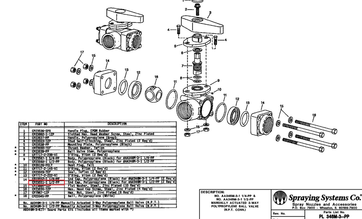 Replacement part for AA346-3-1 manually actuated 3-way poly ball