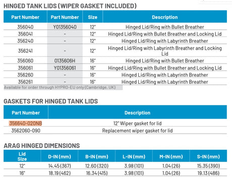 Hypro Wiper Gasket For 12 Inch Polypropylene Hinged Tank Lid - 356640-020NB