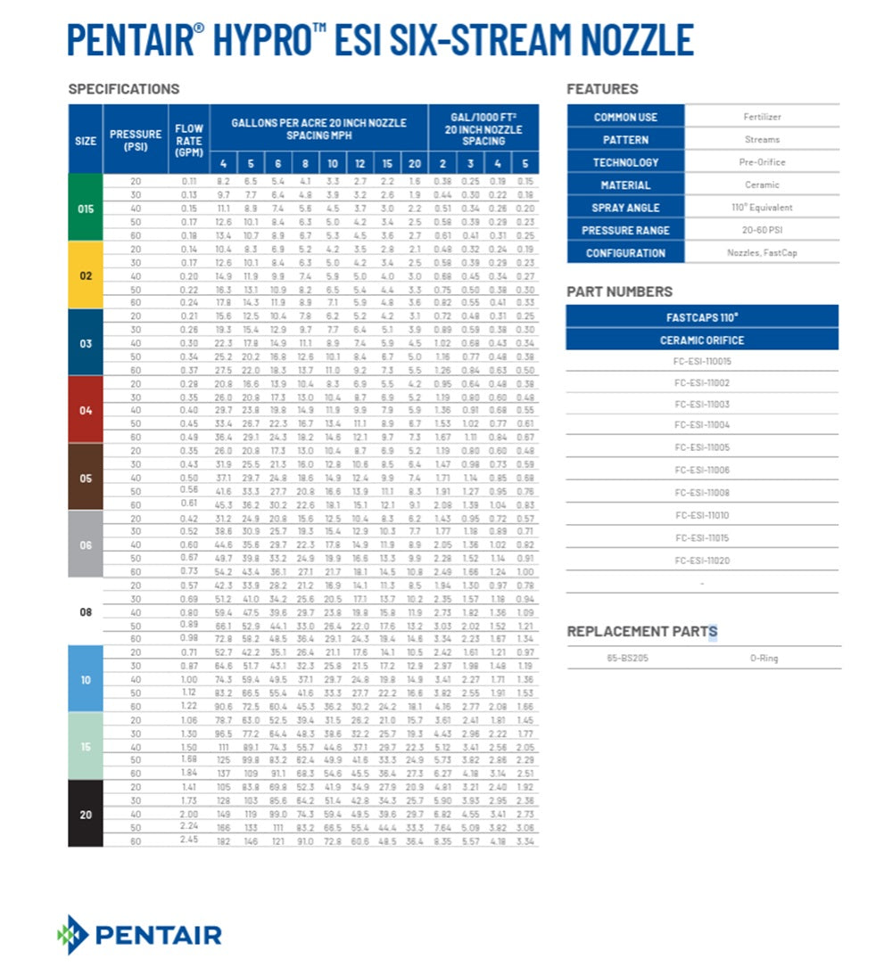 Hypro ESI Six Stream Ceramic Spray Nozzle, Black, 2 GPM @ 40 PSI - FC-ESI-11020P is backordered and will ship as soon as it is back in stock.