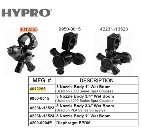 Hypro Poly Wet Boom Hinged Clamp Triple Nozzle Body 1" Blue Check - 4012265P