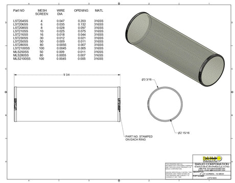 Banjo 16 Mesh 2 Inch Stainless T Strainer Screen 316 Stainless Steel - LST216SS