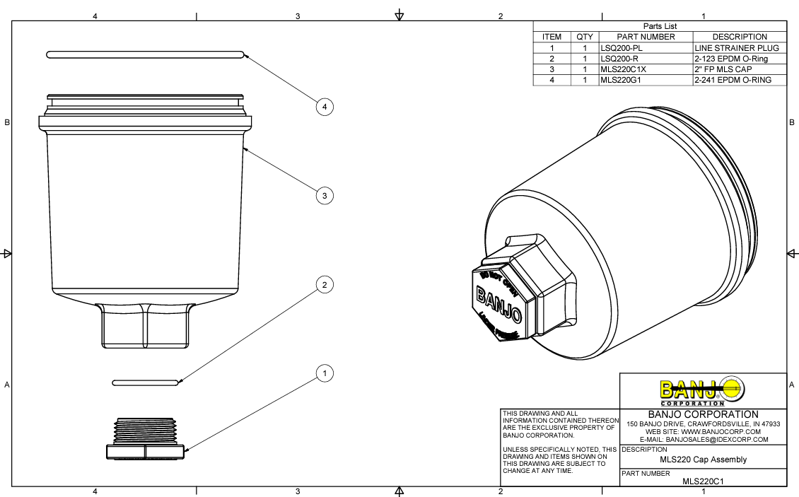 Banjo Polypropylene Full Port Manifold Line Strainer Cap Assembly, 2" - MLS220C1