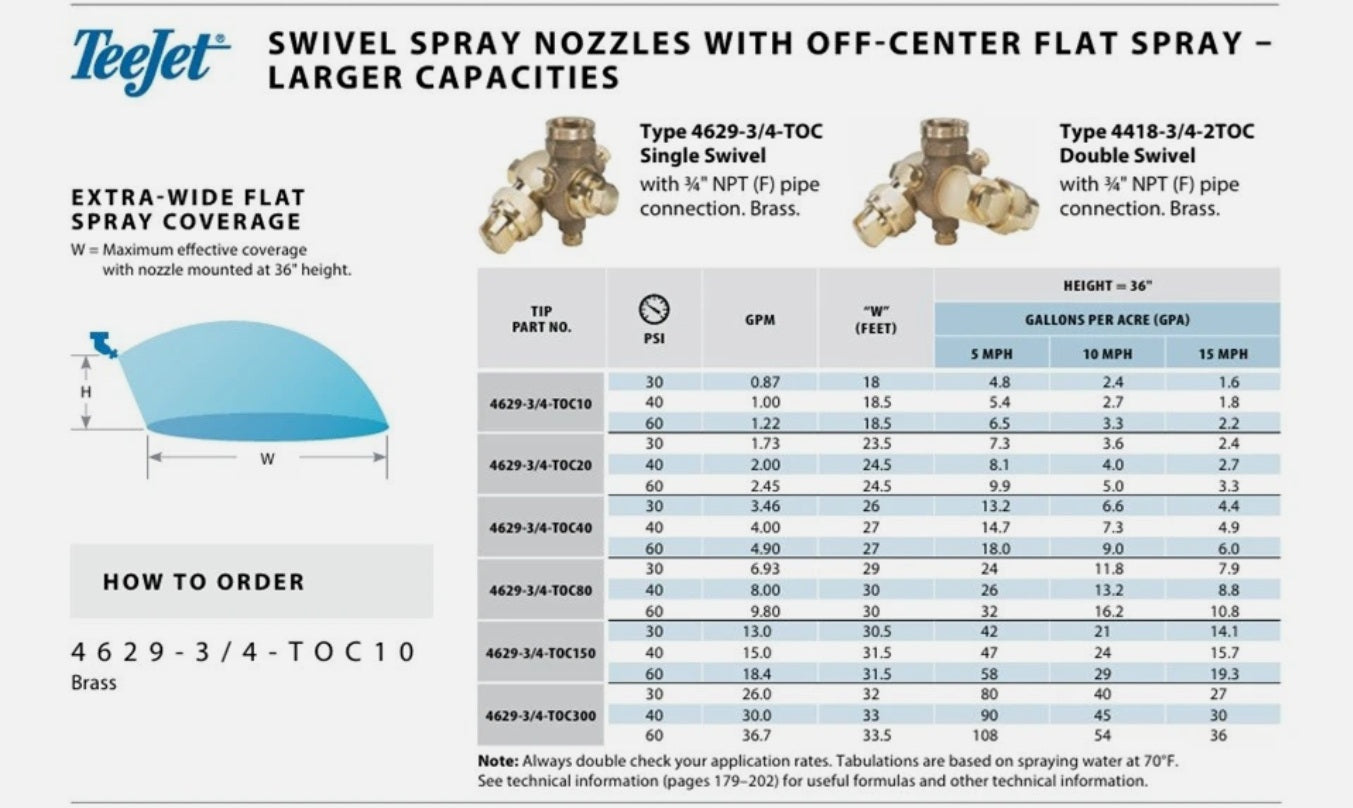 TeeJet Single Swivel Boomless Spray Nozzle Off-Center Flat Tip - 4629-3/4-TOC30 is backordered and will ship as soon as it is back in stock.