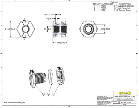 Banjo Poly Bulkhead Tank Fitting with FKM Gasket 3/4" - TF075V