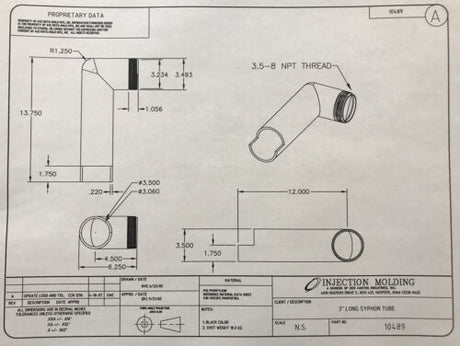 Ace Roto-Mold 3 Inch Male NPT X 12 Inch Long Syphon Tube - 10489
