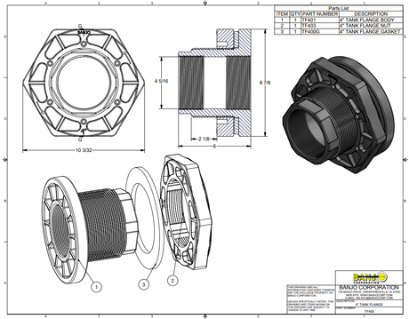 Banjo 2 Inch EPDM Tank Flange Gasket With 3¼" Hole Diameter - TF220G