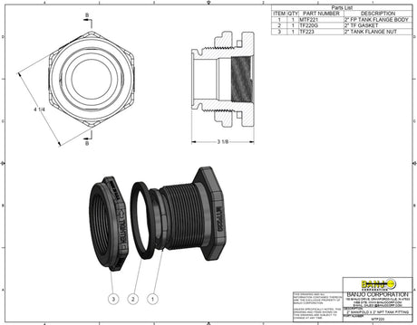 TerreMax Manifold Bulkhead Poly Fitting 2" FP Flange X 2" Female NPT - MTF220