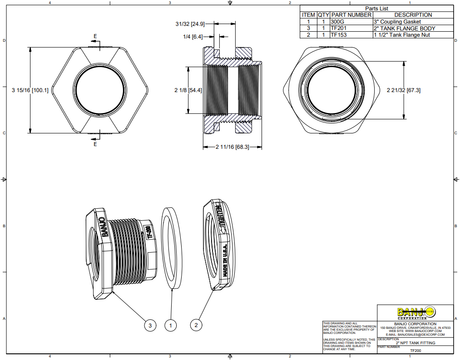 Flowserve Bung Adapter 2 Inch MPT x 2 Inch FPT x 1 Inch FPT - PH-25