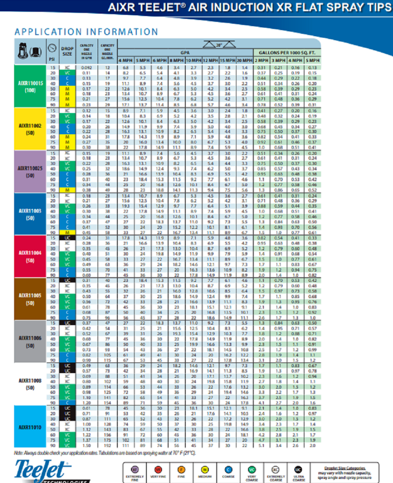 * 110°wide, tapered flat spray angle with air induction technology offers better drift management.