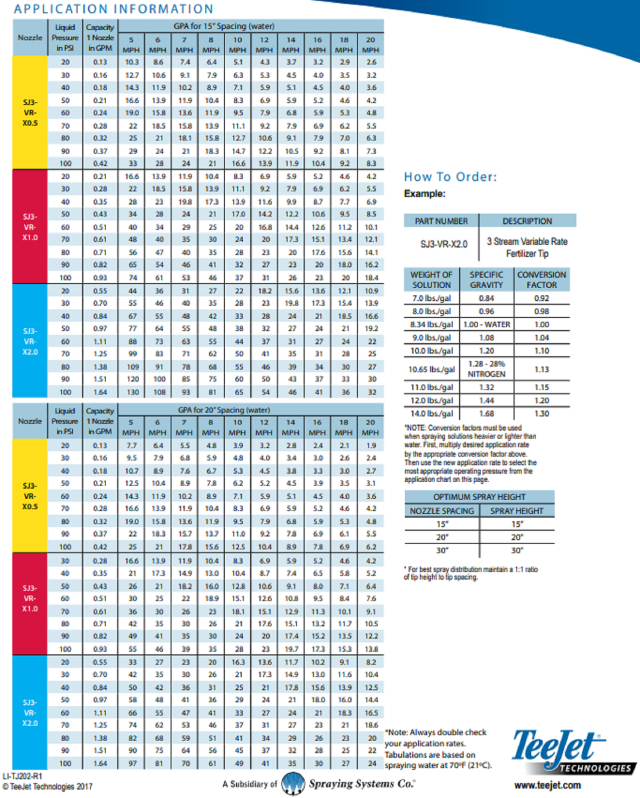 • SJ3-VR tip produces three identical fluid streams for excellent distribution quality in directed applications.