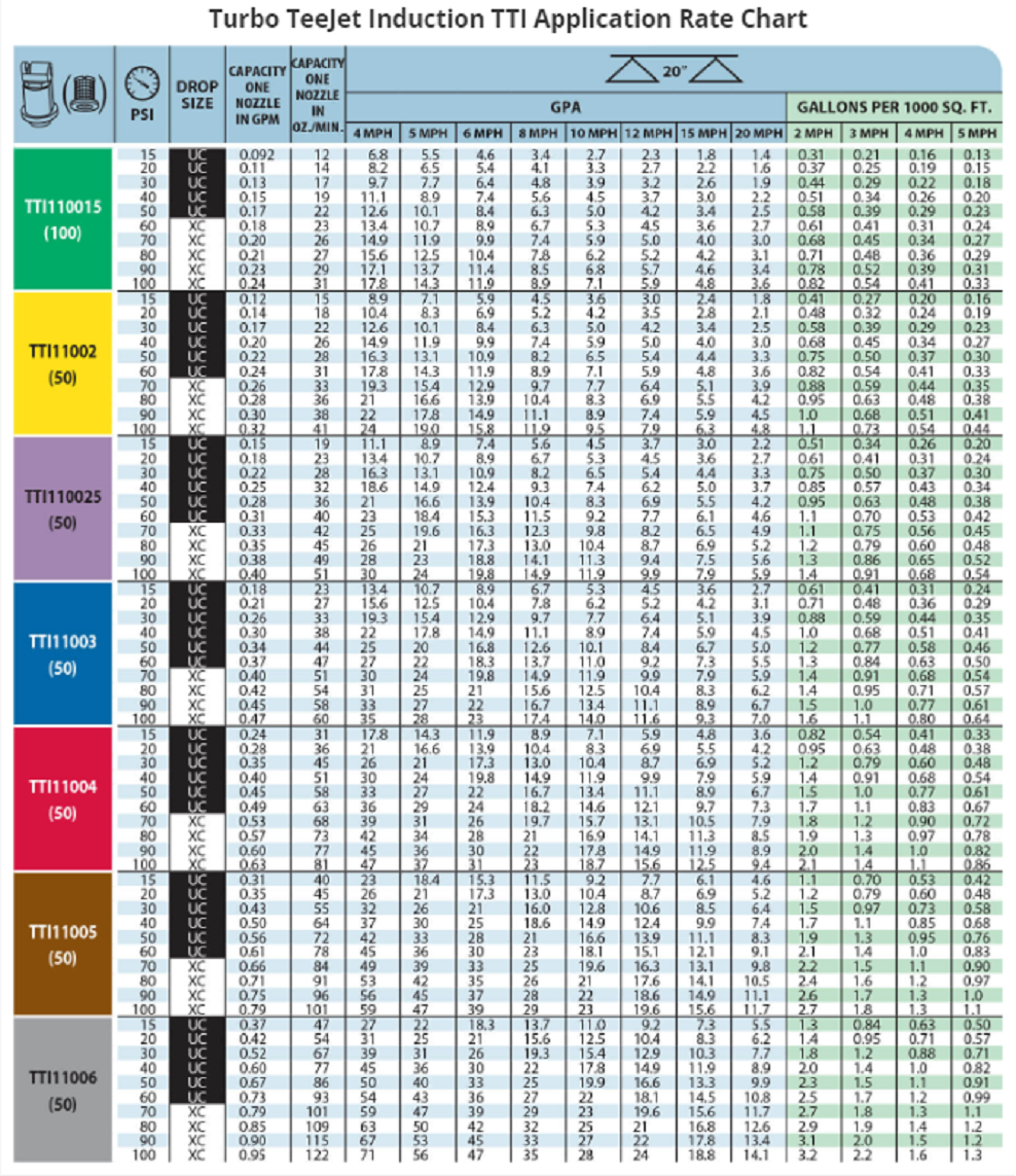* 110° wide angle, air induction, tapered flat spray tip pattern based on the patented outlet orifice design of the original Turbo TeeJet nozzle.