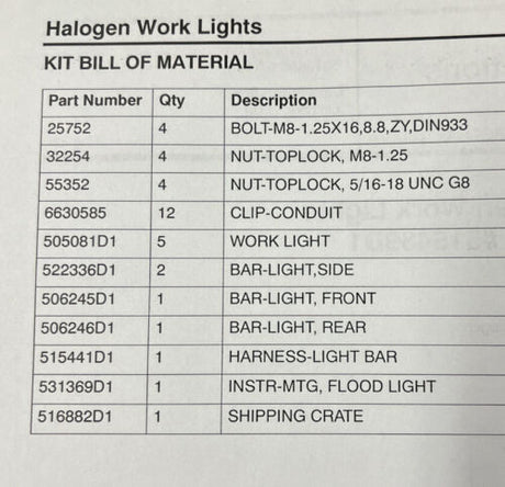 Agco Halogen Work Light Kit For 3XXX and 4XXX Spra-Coupe - 99-601589J1 (515439D1)