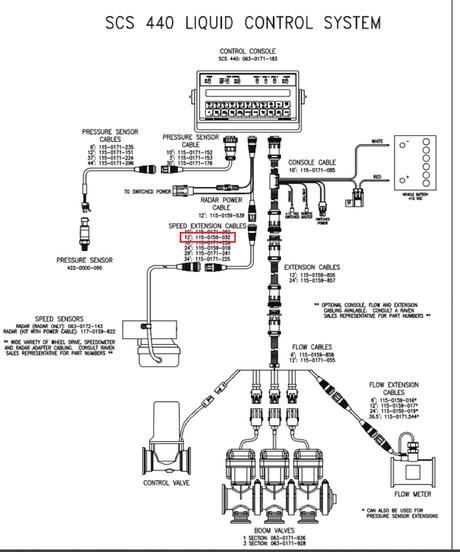Raven 12 Foot Flow Control Cable For 6 Boom SCS 440/450 Systems - 115-0171-129